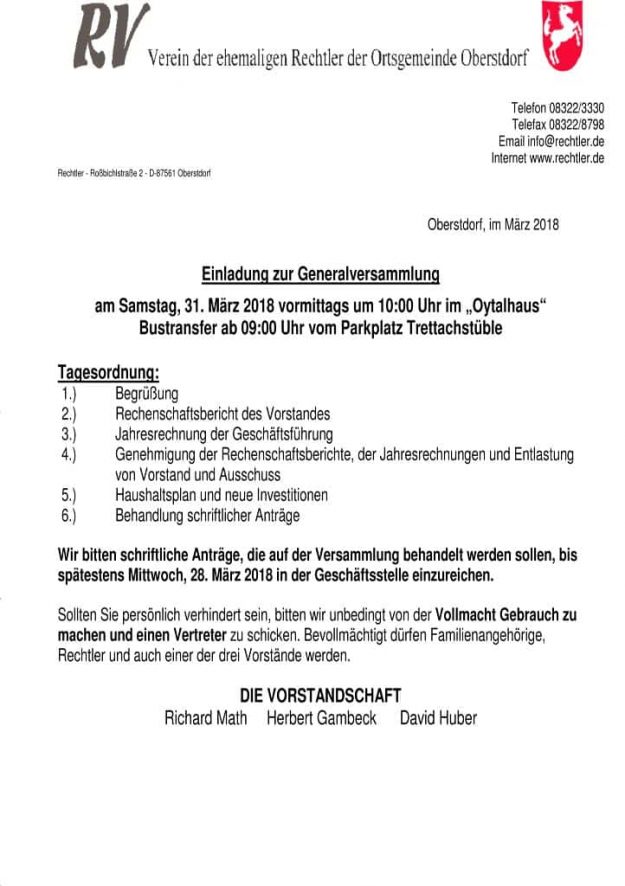 Einladung Generalversammlung 2018 VersammlungenVon Johann AmmannMärz 2018Einladung zur Generalversammlung 2018 einladung generalversammlung 2018