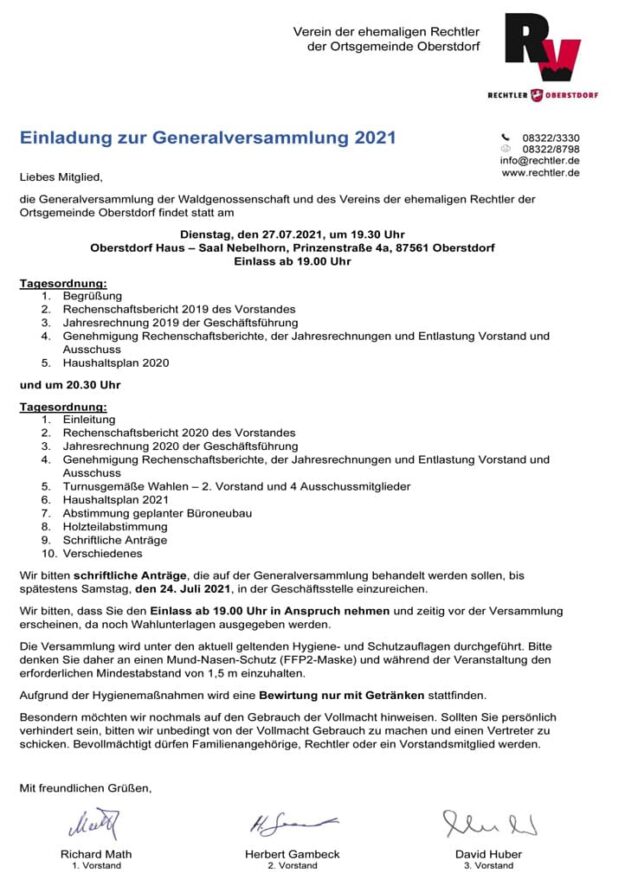 Einladung Generalversammlung 2021 VersammlungenVon Johann AmmannJuli 2021Einladung zur Generalversammlung 2021 Einladung Generalversammlung 2021