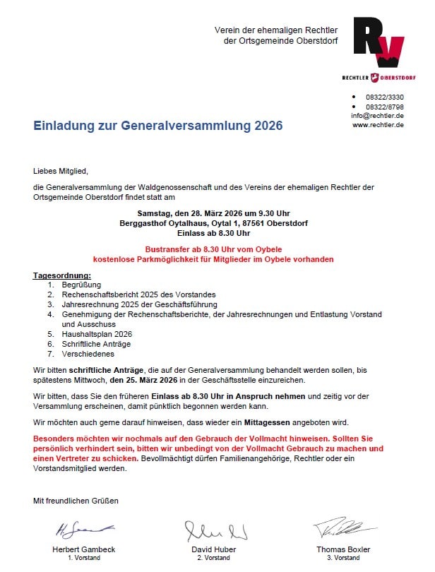 Einladung Generalversammlung 2026